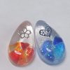 | 6.表面にレジン液をのせて、ネイルシールとデザインフィルムをのせて硬化します。 側面をヤスリで綺麗にして、表面に透明なレジン液をのせてぷっくりさせていきます。 ここで一度にがんばろうとすると、レジン液が溢れて大変なことになりかねません。 薄くのばして側面もつまようじなどで塗って、を繰り返します。 エンボスヒーターで風をちょっとあててあげるとレジン液がさらさらになるので、のばしやすくなります。 (あてすぎると溢れたりするので気をつけてください) ツルツルぷっくりになったら完成です。 |